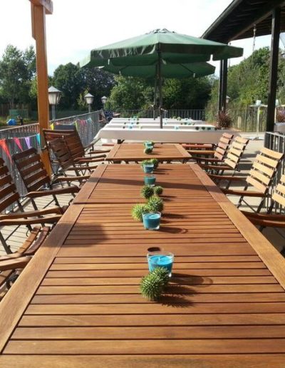 - Bestuhlung sowie Tische im Gastraum und Terrasse (Keine Festbankgarnituren)